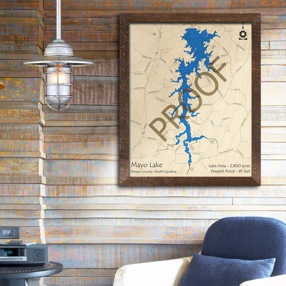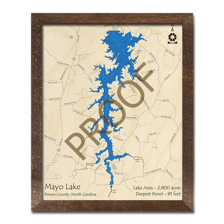 Mayo Lake 3D Wood Map, North Carolina, Nautical Map Art