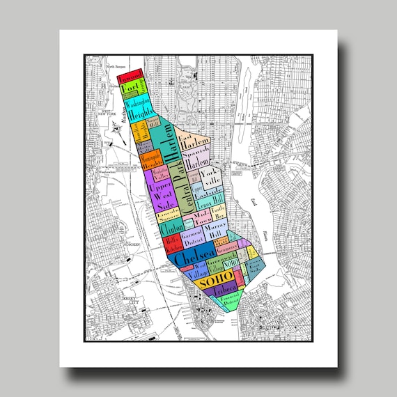 Buy New York Map Manhattan Multi Color Neighborhood Map Print